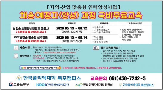 교육모집 | 한국폴리텍V대학 목포캠퍼스