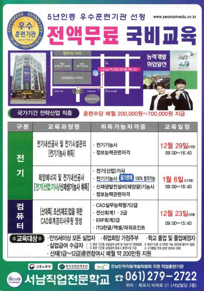 | 교육장주소 | 목포시 비파로 21 (상동, 서남빌딩) |