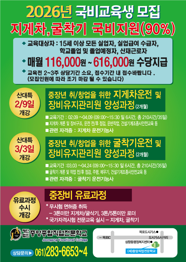 대불산단의 조선관련 단지 조성 및 무안/나주 신도시의 조성을 위한 공사 현장이 지속적으로 증가되고 있으며, 건설 현장에서 반드시 필요한 장비이면서도 각종 안전사고가 빈번히 일어나는 장비로서 장비의 올바른 구조와 사용에 대한 전문적이고 체계적인 교육을 받은 기술 인력의 공급이 절실한 현 상황에서, 기술인력의 양성 훈련기관인 본 학교에서 양질의 인력 공급이 가능한 교육과정이라는 큰 강점을 가지고 있다.