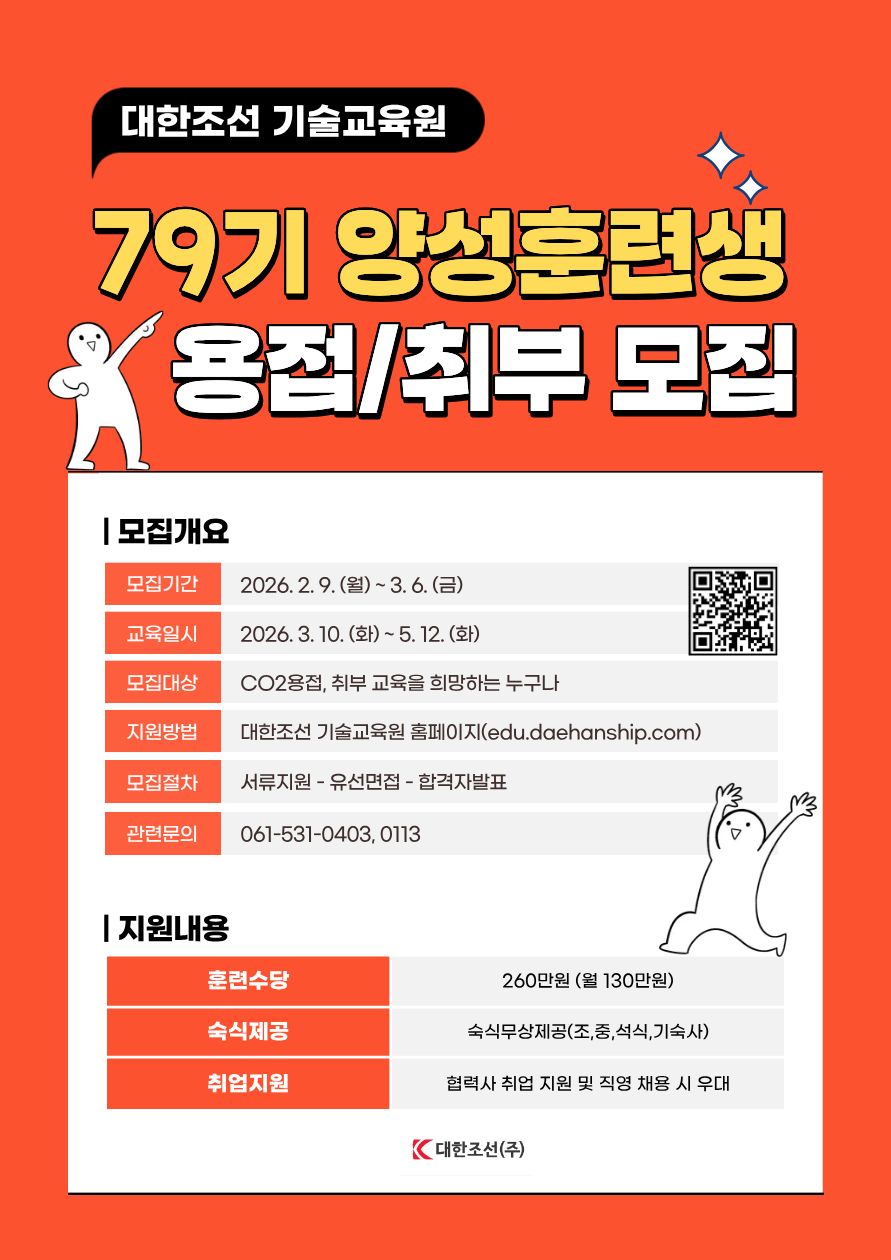 79기 양성훈련생 용접/취부 모집 (CO2용접,취부)