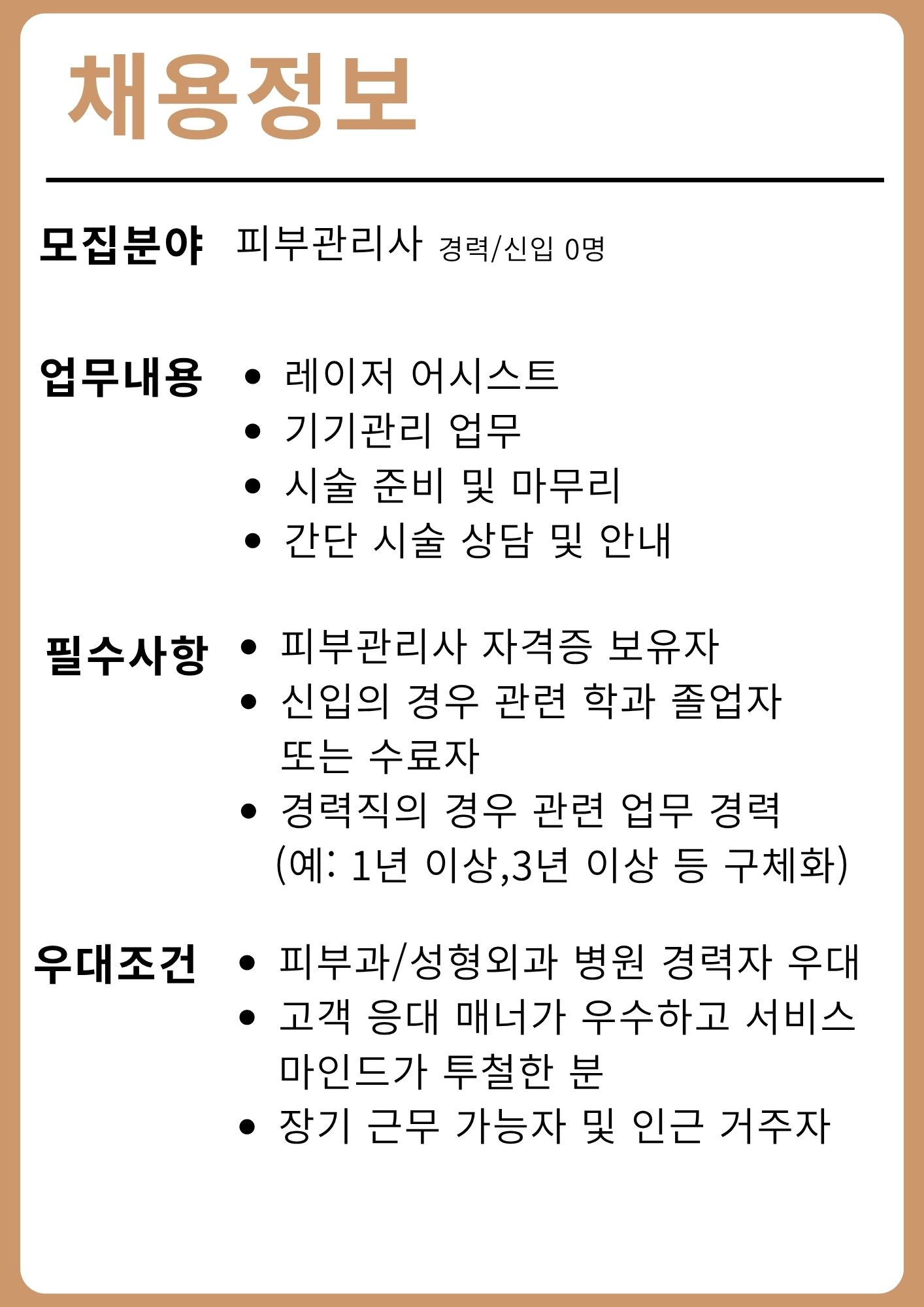 | 채용공고명 | 피부관리사 모집 |