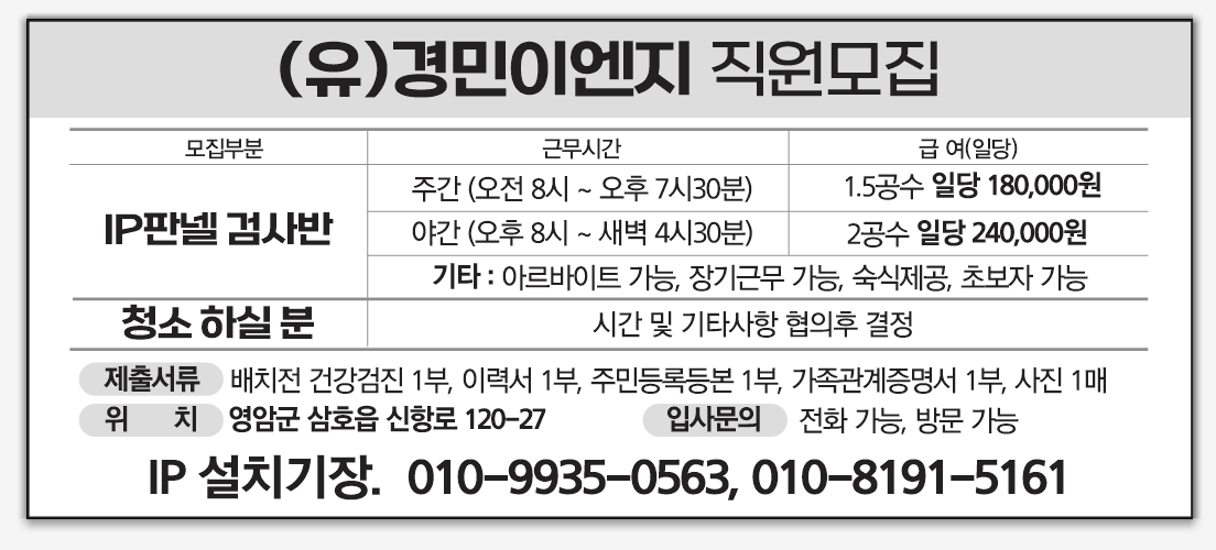 IP판넬 검사반 모집/ 청소하실분 구함