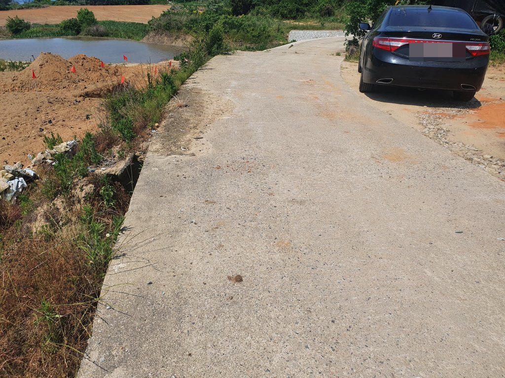현황으로 약2.5미터 포장 도로에 접해있어 진출입은 어렵지 않았습니다