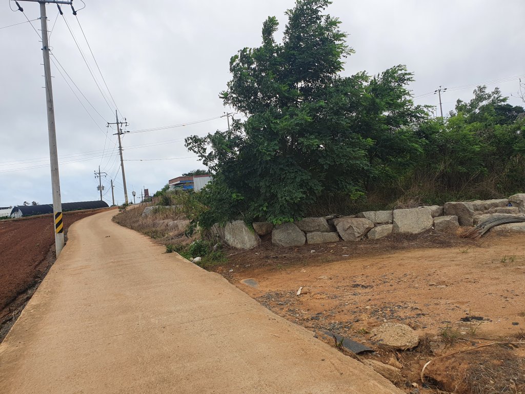 토지는 마을 외곽에 자리하고 있기에 수도나 전기등의 인프라 구축도 할수 있을것으로 생각이 되며 앞쪽으로는 시인성이 있고 멀리 바다도 보이니 답답함이 없습니다