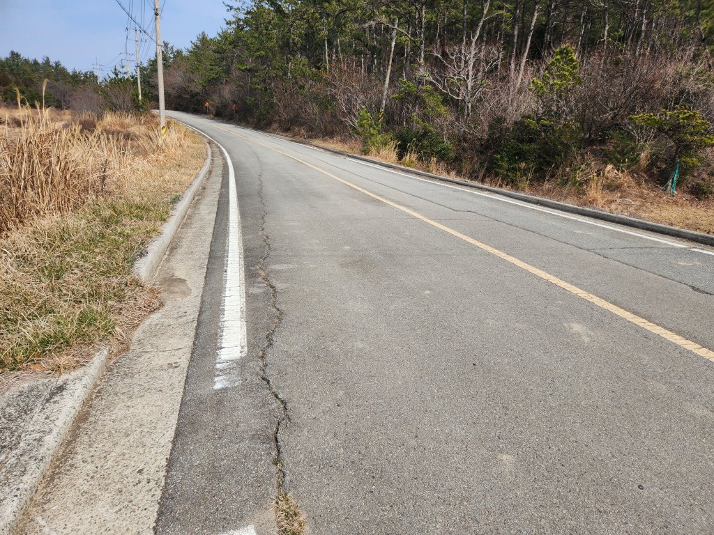​토지 앞쪽으로는 바다가 보이며 지적도상 길이 있구요 현황으로도 2차선 아스팔트 도로에 접해 있습니다