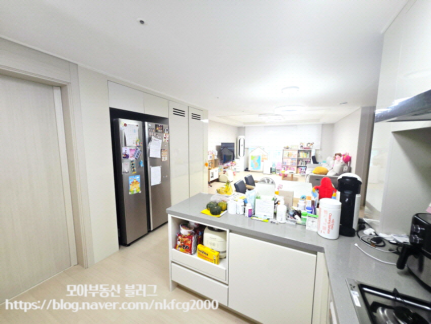 실용적인 주방은 대형 냉장고 자리, 빌트인 수납장, 아일랜드 구조까지 요리와 식사를 동시에