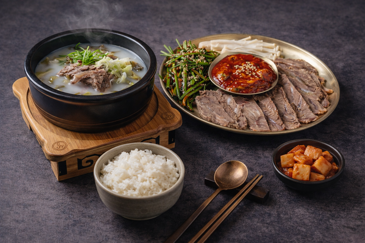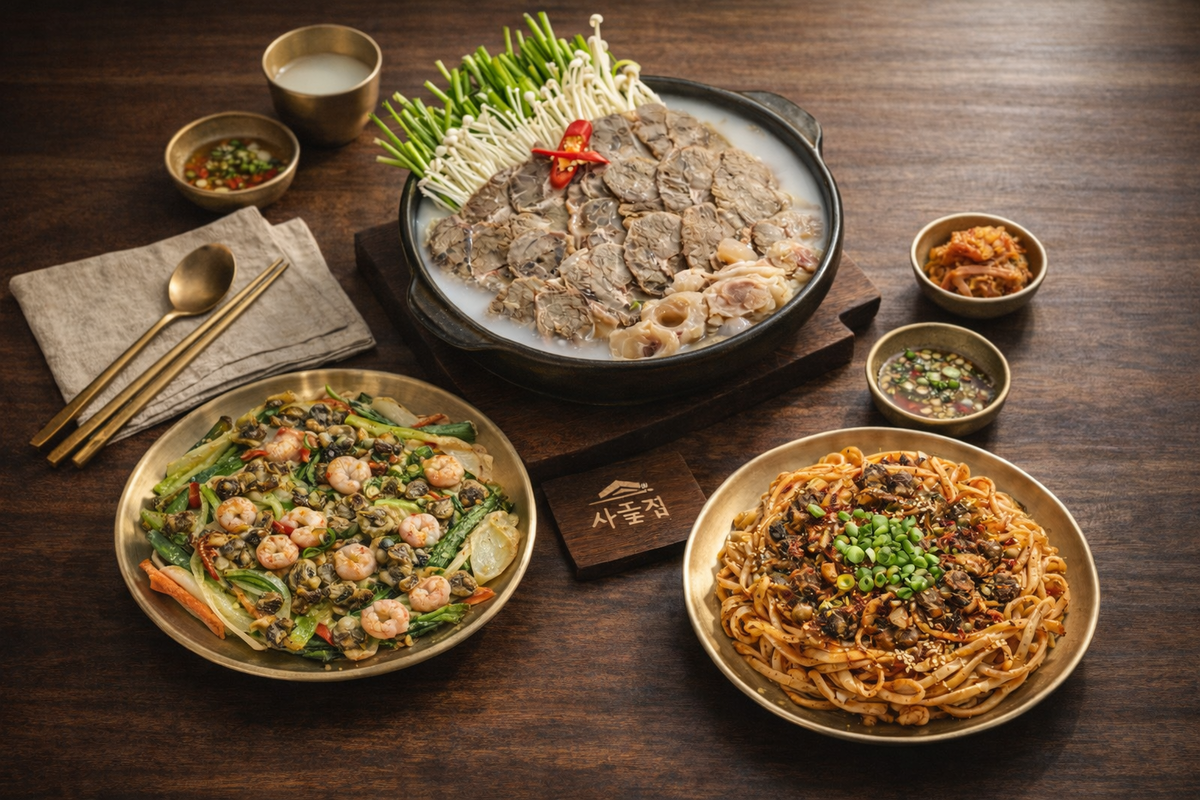 사골국밥 / 얼큰해장국 / 꼬막비빔밥 중심 구성